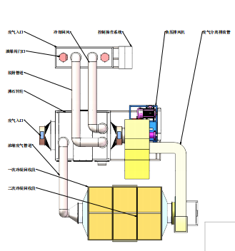 4. 浓缩处理中一部份风对转轮进行冷却,冷却后风进入高温加热腔内进行升温;