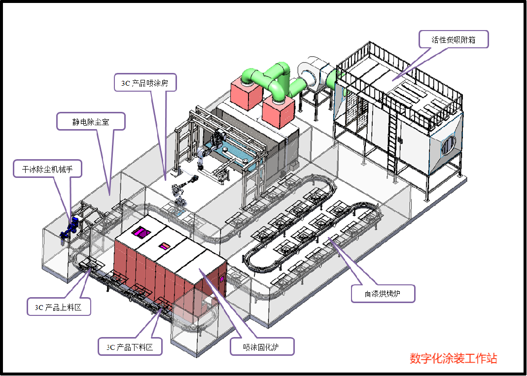 涂装智能化制造系统作为一种自动控制执行系统是智能工厂构建过程中不可或缺的技术之一,可有效地强化过程管理和控制,达到精细化管理目的。Jinker智能涂装工作站通过AI智控界面以及5G智能系统云平台实现对喷控的智能化与数字化。