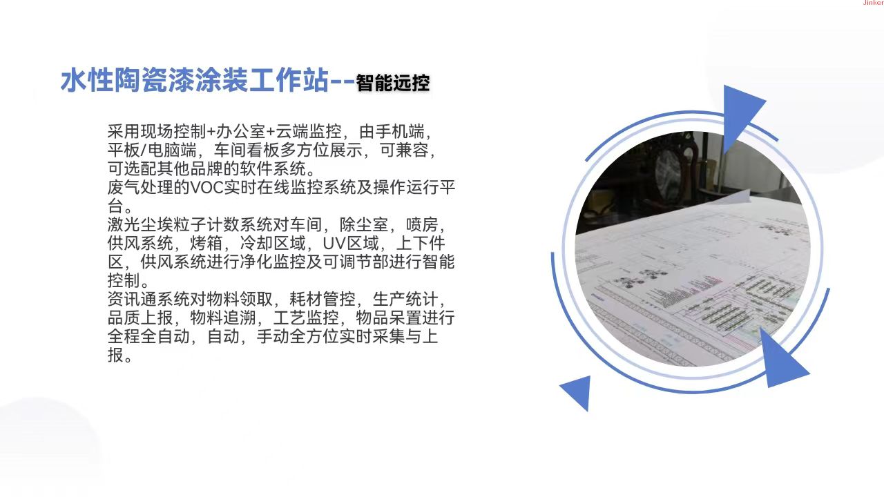 jinker是一家非标工业自动化和工业云系统平台的方案集成解决商,深耕涂装自动化、环境自动化和智能系统数字化三大领域,针对行业群体推出“硬件总装、软件集成、技术设计、施工总包”服务,让客户获得一站式行业服务,高质量又高效益。