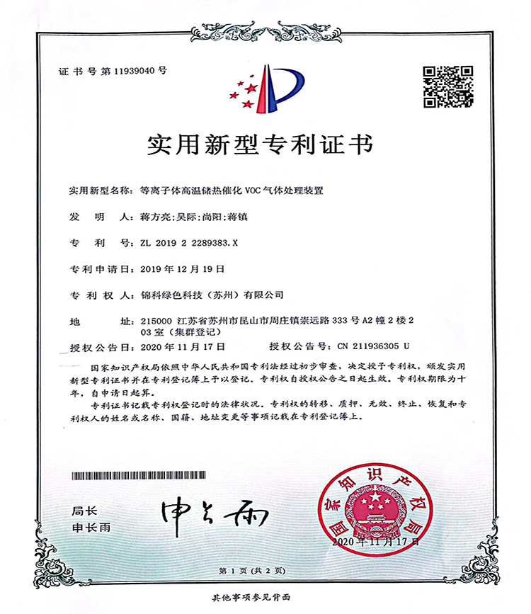 等离子体高温储热催化VOC气体处理装置