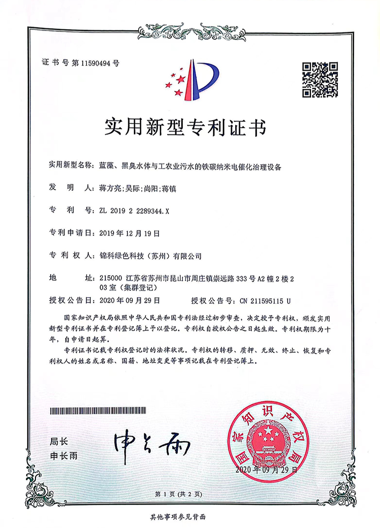 蓝藻、黑臭水体与农业污水的铁探纳米电催化设备