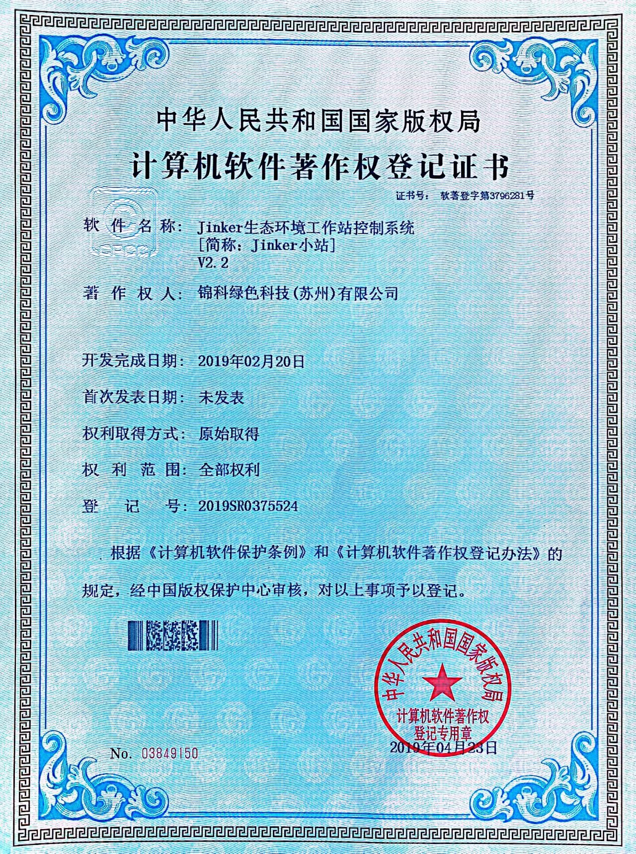 Jinker生态环境工作站控制系统